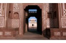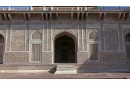 The mausoleum of Itimad-ud-Daulah, built of white marble incrusted with semi-precious stones, in Agra, the capital of the Mughal Empire. Islamic funeral rites are strictly observed in a structure that combines every representation of paradise. A gem.